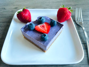 This Blueberry “Cheesecake” is gluten-free, dairy-free, and refined sugar-free! Did you know that cashews can replicate the creamy texture of cheesecake? Amazingly, this recipe utilizes your freezer rather than your oven, which is perfect for a hot summer day! The end result is a decadent, creamy, good-for-you cheesecake loaded in fiber and antioxidants. Blueberries🫐 are one of my favorite superfoods and have “anthocyanins,” the antioxidant that gives it that dark blue color.