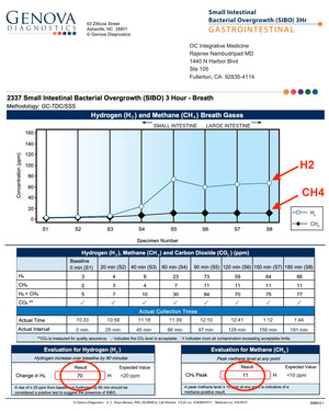 - Hydrogen (H₂): 70 ppm — diagnostic for hydrogen-dominant SIBO