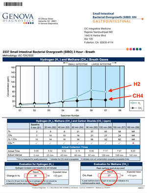 — consistent with mixed-type SIBO. The elevated methane levels suggested Intestinal Methanogen Overgrowth (IMO) associated with chronic constipation.