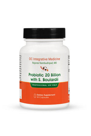 Probiotic 20 Billion with S. Boulardii is a unique probiotic formula designed to deliver active organisms shown to promote healthy gut microflora, protect intestinal integrity and boost immune function. Included in this formula is Saccharomyces boulardii, an extensively researched microorganism shown to help restore microflora balance by enhancing commensal organism function. Each Probiotic 20 Billion with S. Boulardii capsule provides six strains of Lactobacillus and Bifidobacterium chosen for their ability to withstand the harsh gastrointestinal environment and adhere to the intestinal tract to deliver superior results.