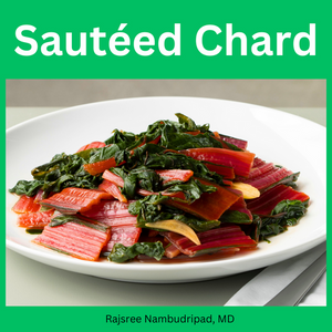 In a large pan on low-medium heat, heat the olive oil and add in the onions and garlic.  Sauté for a few minutes until fragrant.  Add the chopped chard, salt, pepper, and chicken broth.  Cover and lower the heat to low.  Cook for 5 minutes.  Finish off the dish by stirring in 1 tsp of organic ghee.