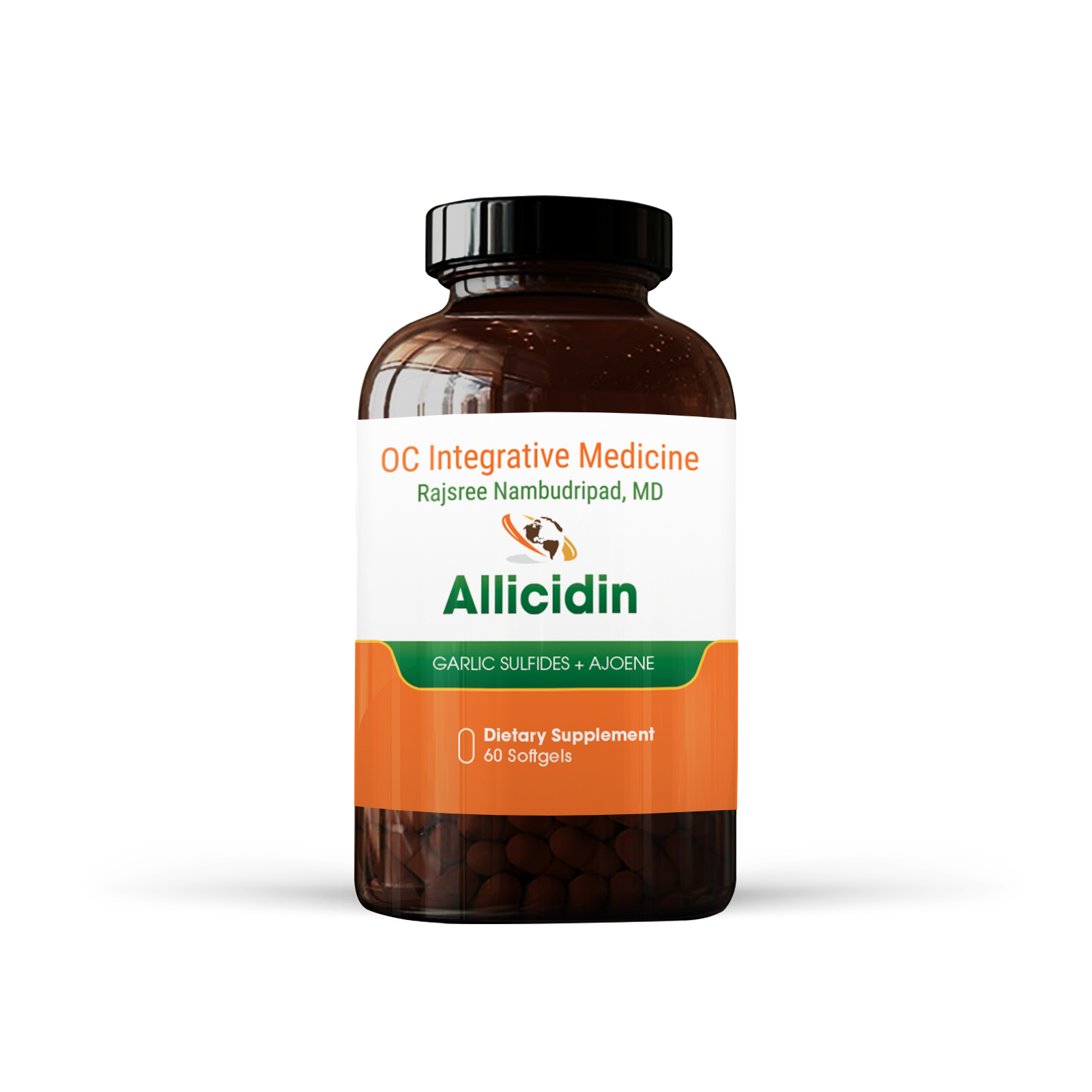 Allicidin is made from garlic oil and has several key bioactive compounds from garlic including allicin, diallyl sulfide, and ajoene. It is used to treat Dysbiosis (gut microbiome disturbances), SIBO (Small Intestine Bacterial Overgrowth), SIFO (Small Intestine Fungal Overgrowth), and Candida (ye...